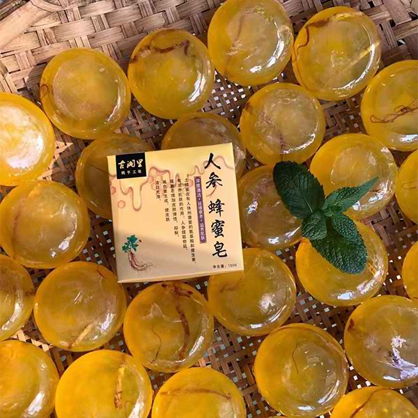 我们精选长白山人参熬煮,之后加入土蜂蜜,棕榈油和维生素e,制作成护肤的手工皂,形状大小合适,泡沫天然且丰富,散发淡淡的人参味。很多客户朋友用来洗脸洗手!