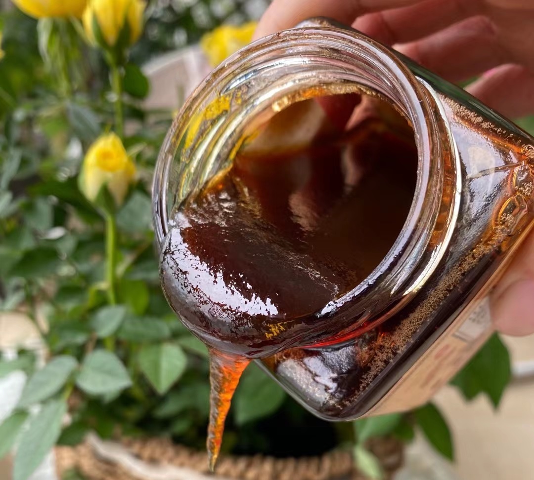 一、核心制作工艺:山楂,茯苓,麦芽,大枣,山药,鸡内金浸泡熬煮很久,过滤出药渣,才加入老冰糖浓缩成膏。所以我们的山楂茯苓膏不但非常浓郁,而且成品膏体也是呈现出棕红色,不是市面上一般麦芽糖版的黑色。